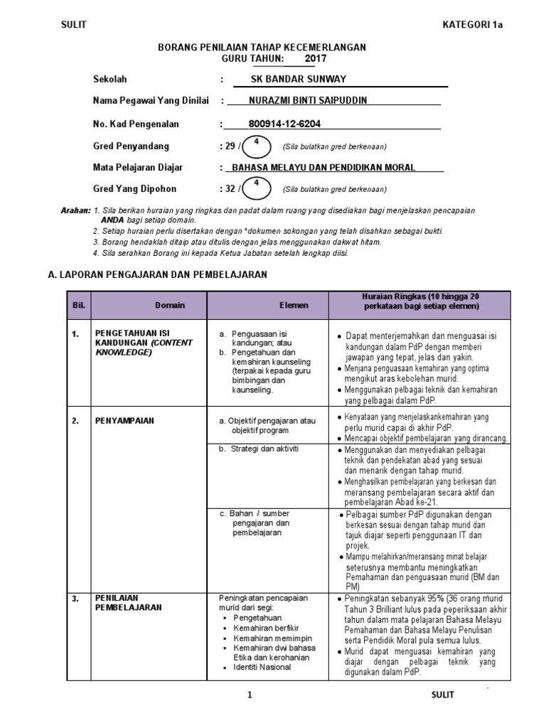 Tanpa Nama 1 Disember 2017 1144 PTG. Jika dapat apa2 sijil luar dari. Borang penilaian tahap kecemerlangan guru.